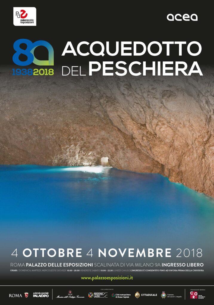 1938 – 2018. 80° ANNIVERSARIO ACQUEDOTTO DEL PESCHIERA Palazzo delle Esposizioni, Roma 4 ottobre – 4 novembre 2018 Il Palazzo delle Esposizioni di Roma ospita la mostra dedicata all’Acquedotto del Peschiera, la principale infrastruttura idrica al servizio della Capitale e tra le più imponenti d’Europa. Organizzata da ACEA e curata da C.O.R. di Alessandro Nicosia, […]