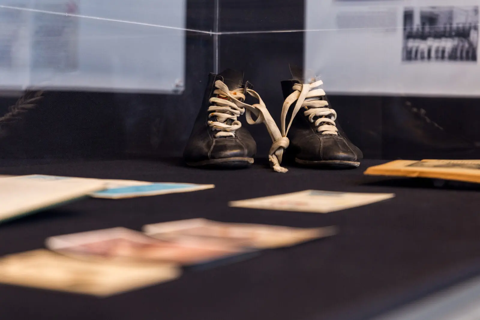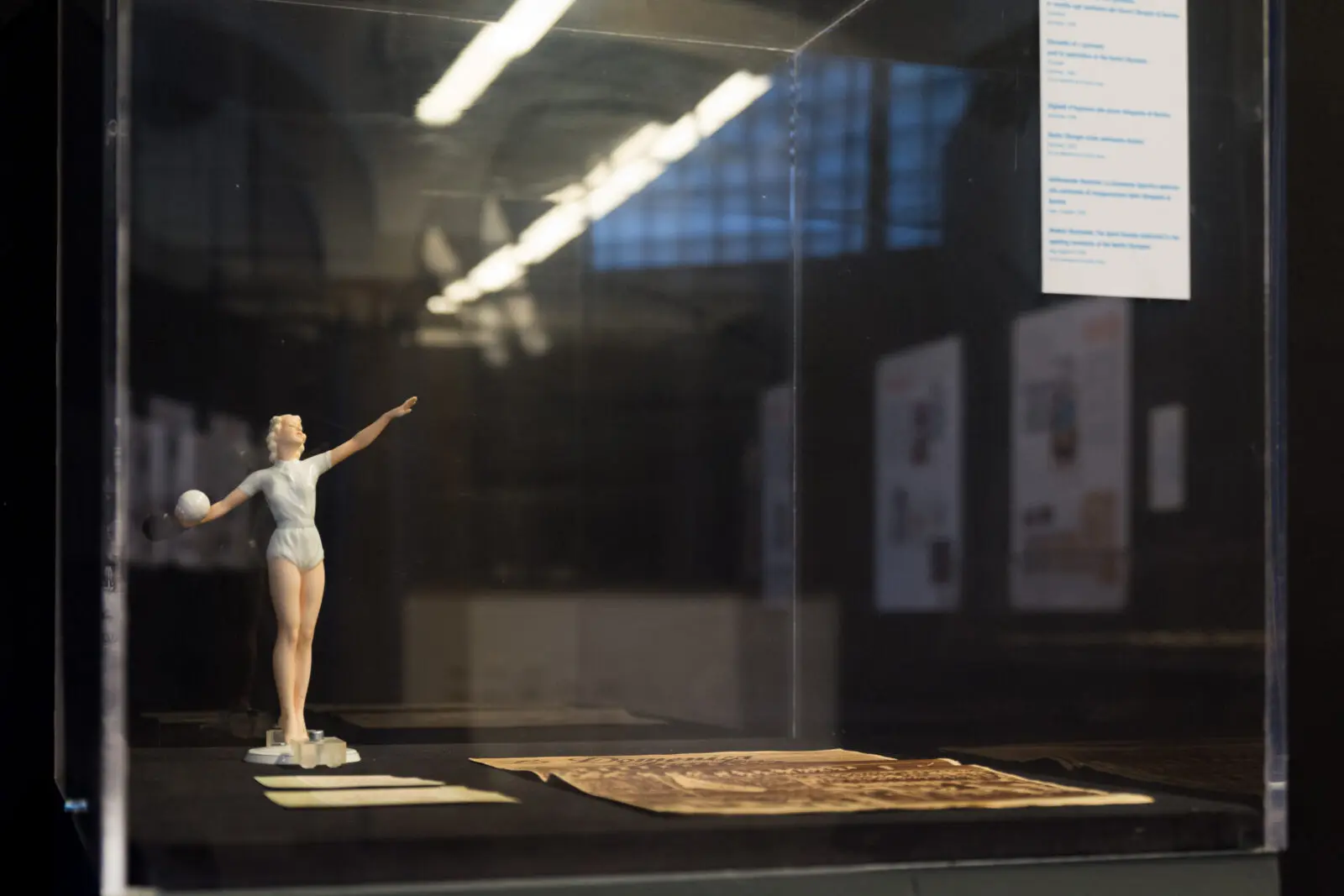 L’esposizione documenta questa realtà attraverso una ricca selezione di trofei, medaglie e documenti d’epoca. Tra i materiali di particolare rilievo figurano l’album dei Giochi Olimpici di Berlino del 1936, pagine storiche della Gazzetta dello Sport e illustrazioni d’archivio che testimoniano l’associazione tra sport e propaganda politica. Il percorso illustra il passaggio dalle teorie di sottomissione alla loro applicazione pratica, che trasforma i campi da gioco in spazi di esclusione e persecuzione.